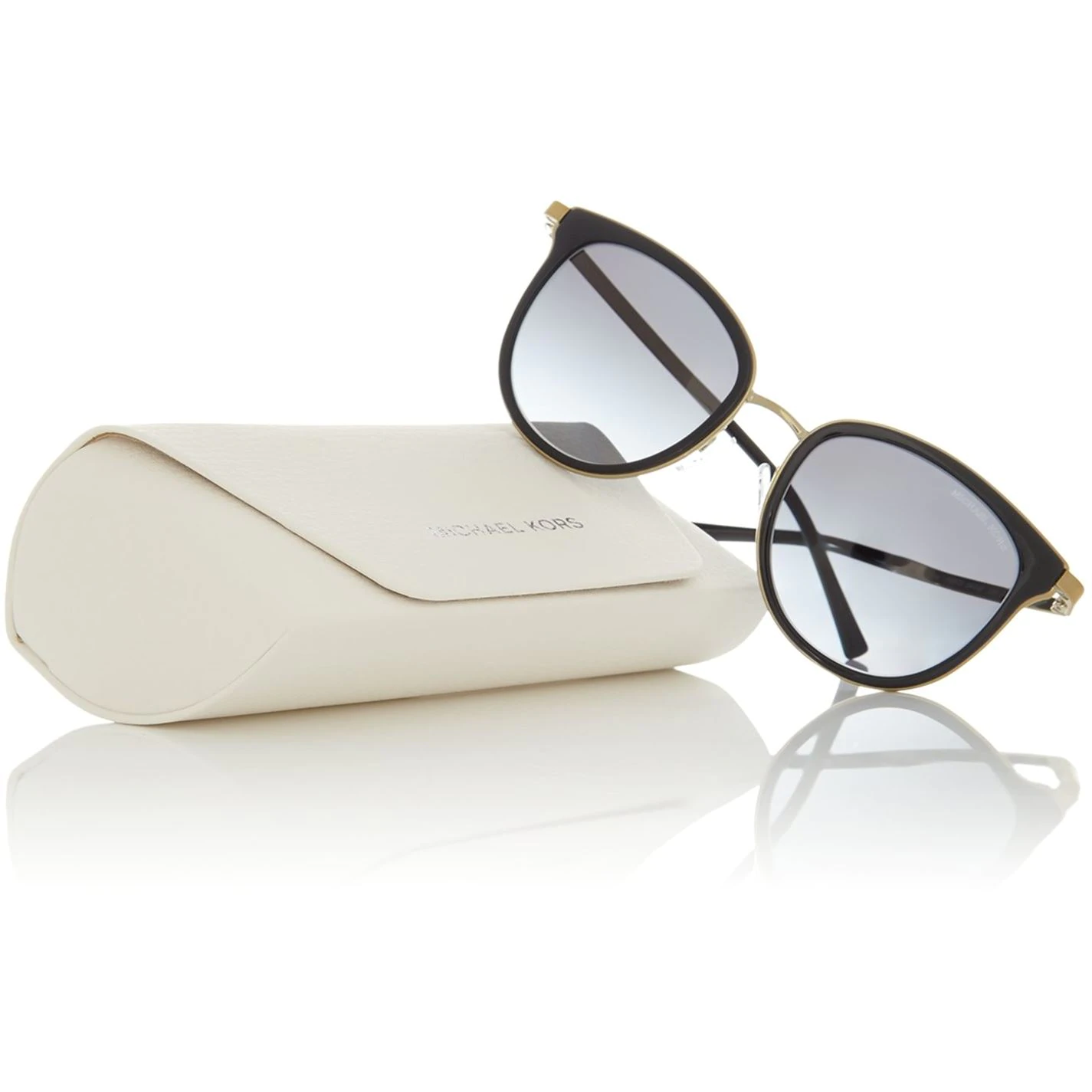 Michael Kors female Black/Gold sunglasses MK1010 ADRIANNA I featuring square frame and grey polarized gradient gradient lenses.
