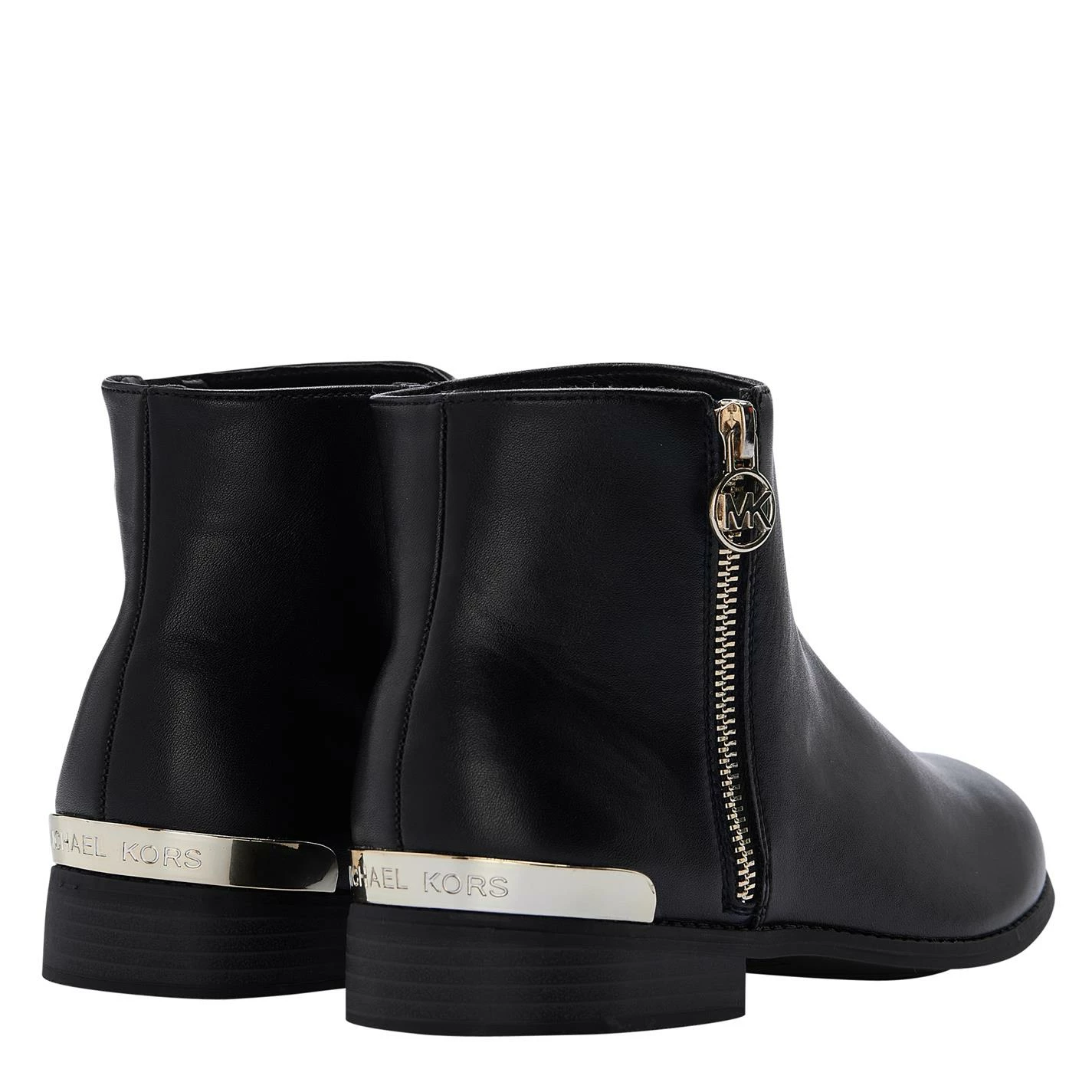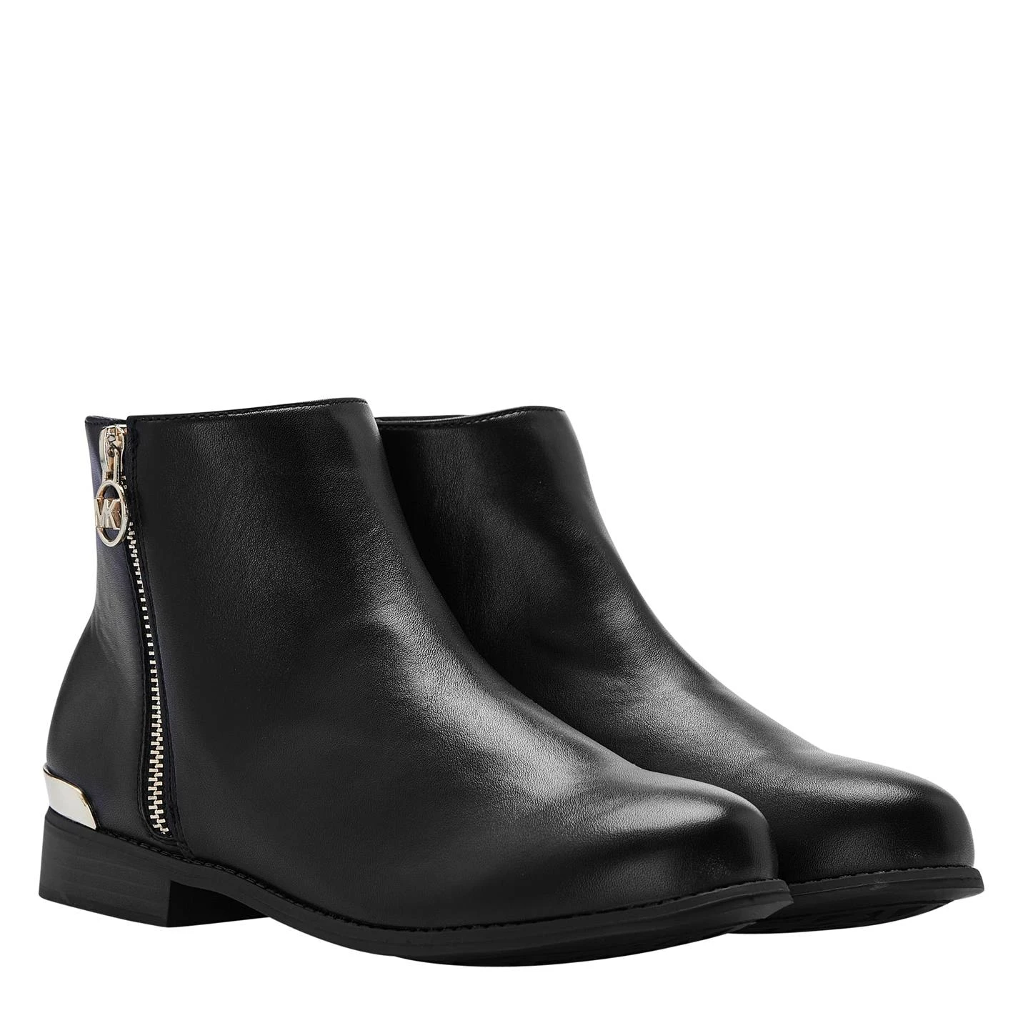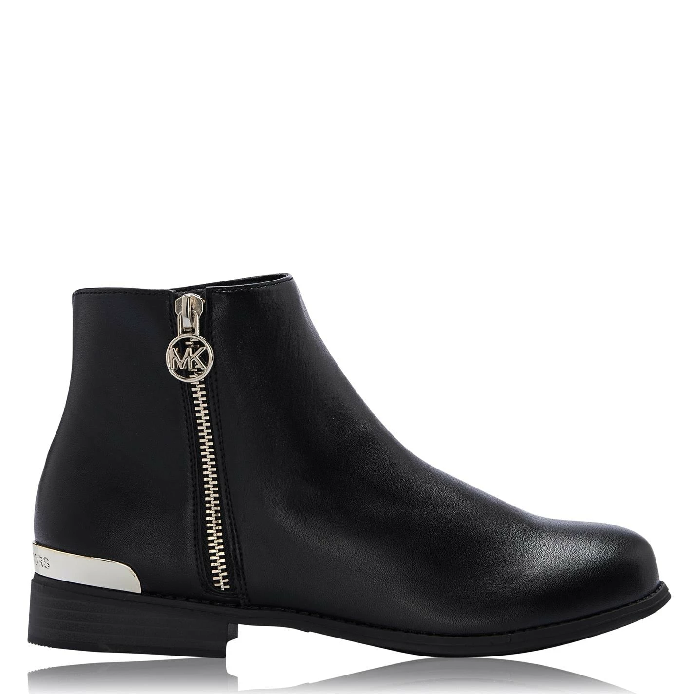 Update your child attire with the Emma Boot from Michael Michael Kors. Cut in an ankle high silhouette, this boot styles a Faux Leather fabrication to the exterior with an almond shaped toe and tonal size zip fastening for a secure fit. Styled with a gold-toned zip fastening on the outer silhouette adorned with an MK banded pull tab, this boot is sat upon a low block heel and is complete with a hardware accent to the upper heel. Pair with your favourite dress and tights for a day-to-evening look.