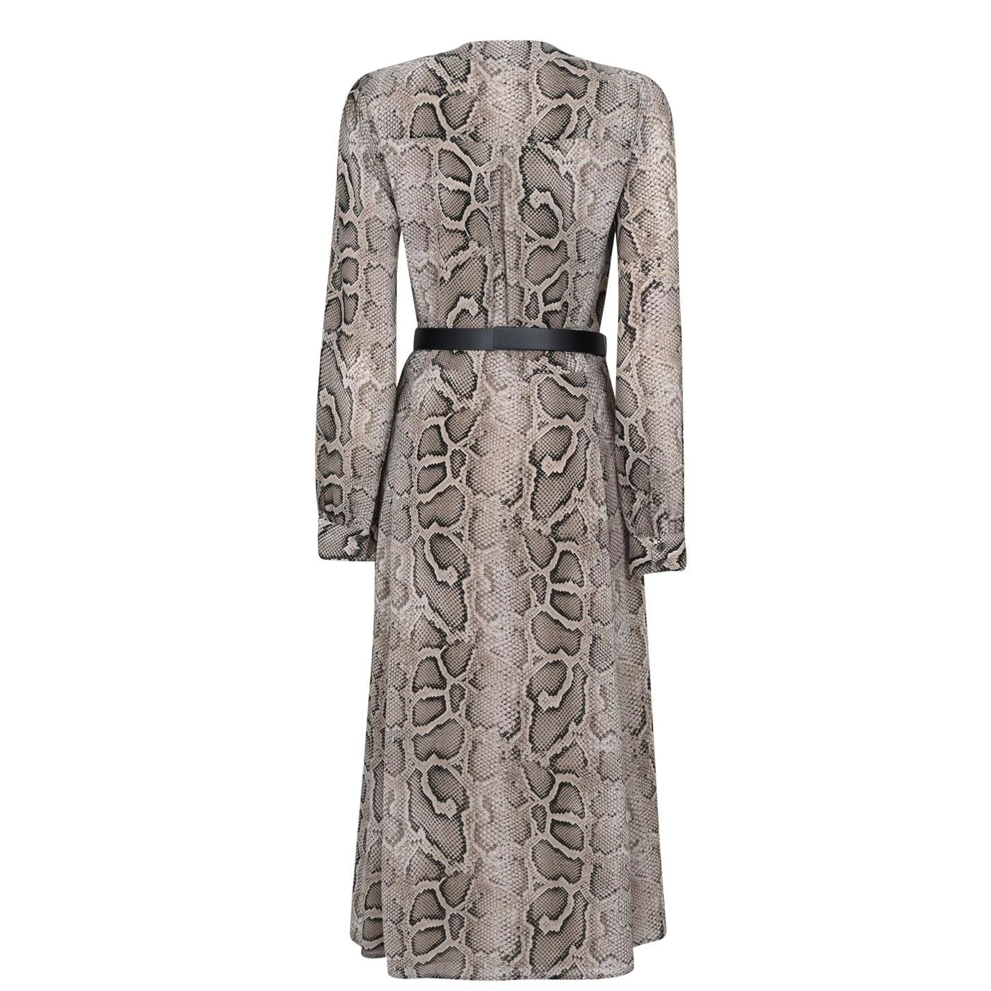 Cut in a long sleeved style with a button fastening down the front, a v-neck collar and then featuring dual buttoned mitred cuffs for ease of wearing. Crafted from polyester with a polyester internal lining and then featuring a belt for the option of having a cinched waistline. Finished with an all over snake print for a fierce look. You cannot miss out on this one.