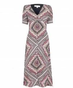 Upgrade your dress wardrobe with this Michael Kors Puff Sleeve Midi Dress, featuring a new romantic print style. The design hugs the torso before flowing out towards the hem, creating a flattering silhouette, aided by the elegant v-neckline. Fabric-covered buttons fasten the dress through the chest, while the puffed short sleeves add a further dimension to the piece.