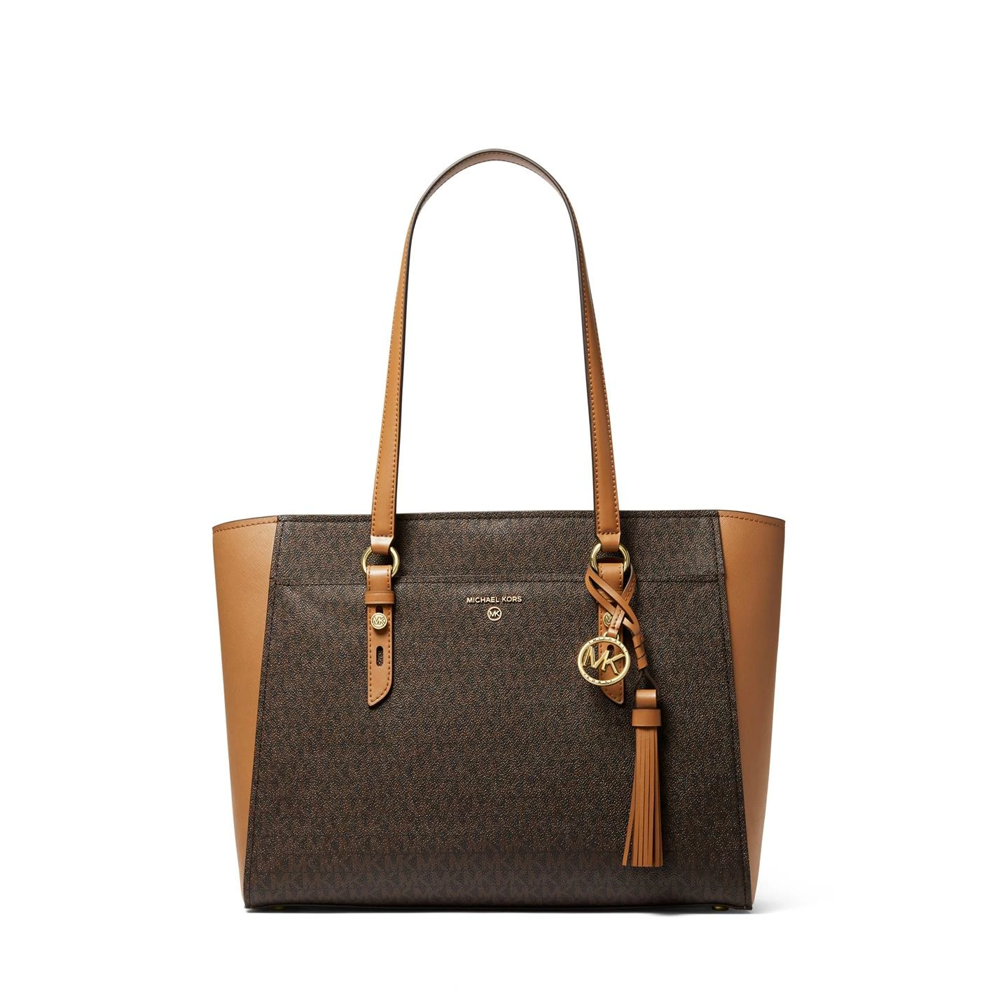 This Tote Bag from MICHAEL Michael Kors is both smart and elegant. Crafted from quality materials, it features shoulder straps, a top zip fastening and handy yet sleek slip-in pockets to the sides. Completed with the signature MK branding and hanging charm.